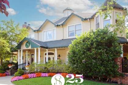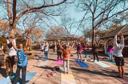 Come enjoy an outdoor practice in the lush and green Grand Courtyard of the Sanford House Inn located in historic Downtown Arlington.